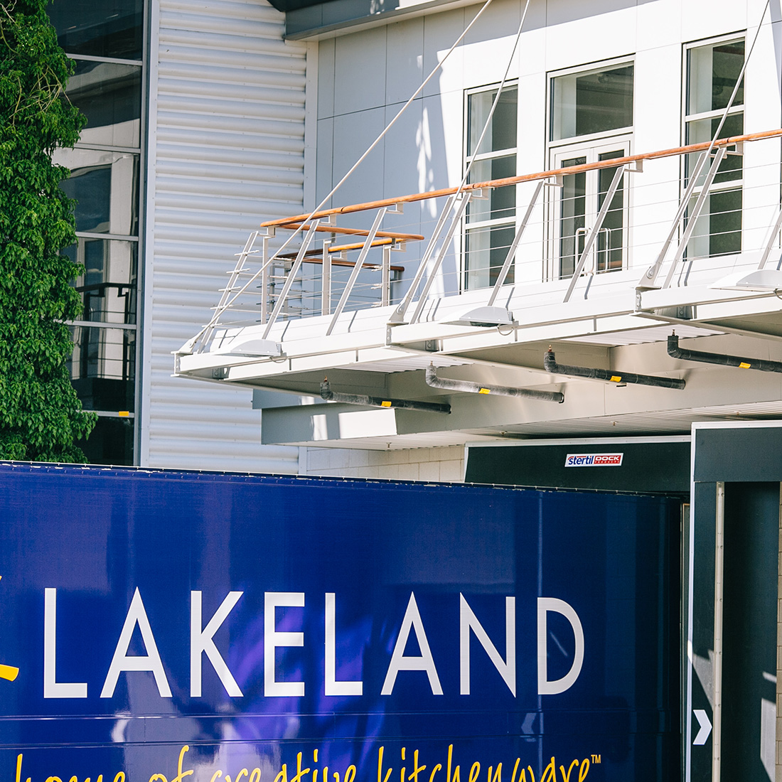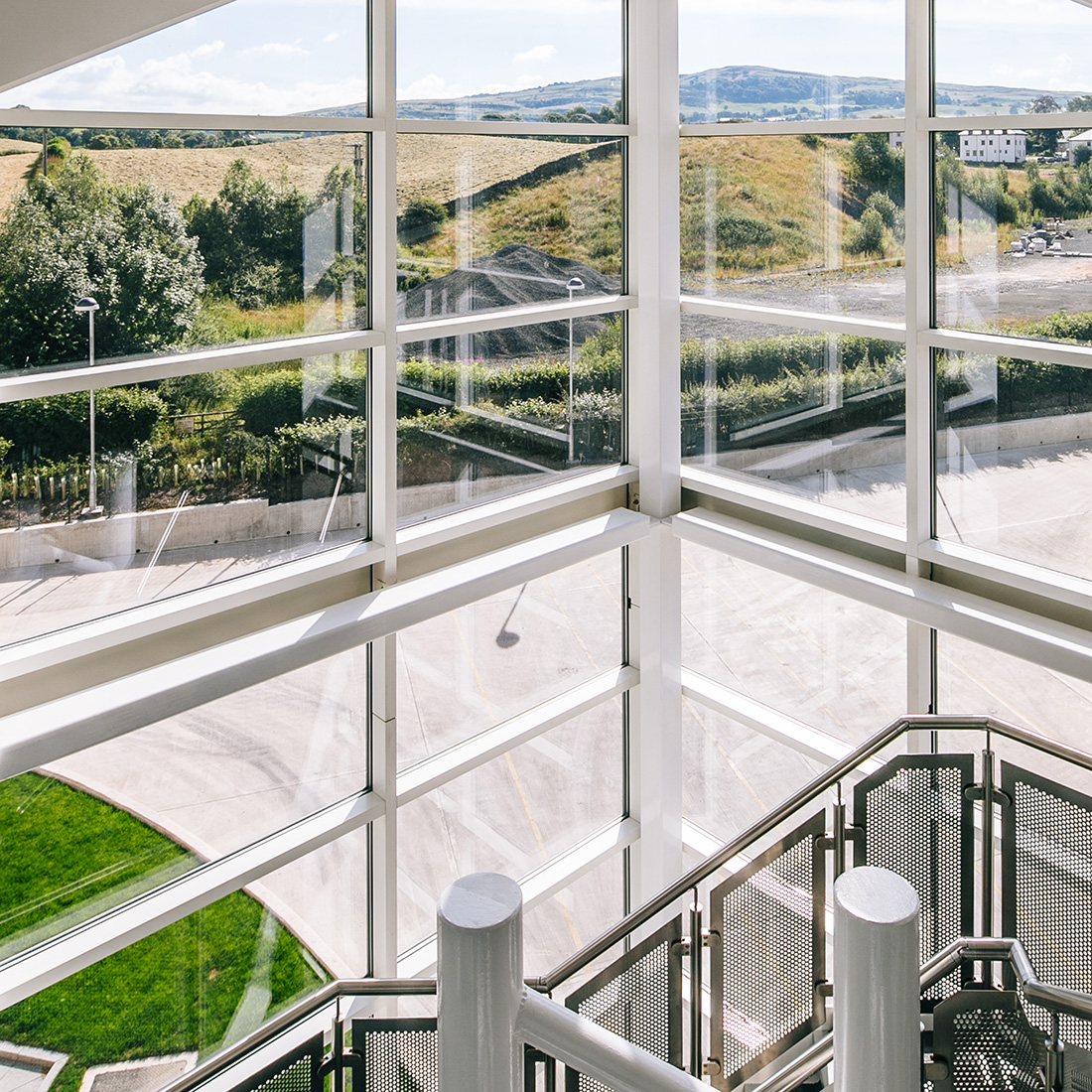 The Lakeland Distribution Centre site sits on a flood plain of the River Kent near Kendal on the edge of the Lake District, requiring the building to be raised approximately 1.8 metres above natural ground level.