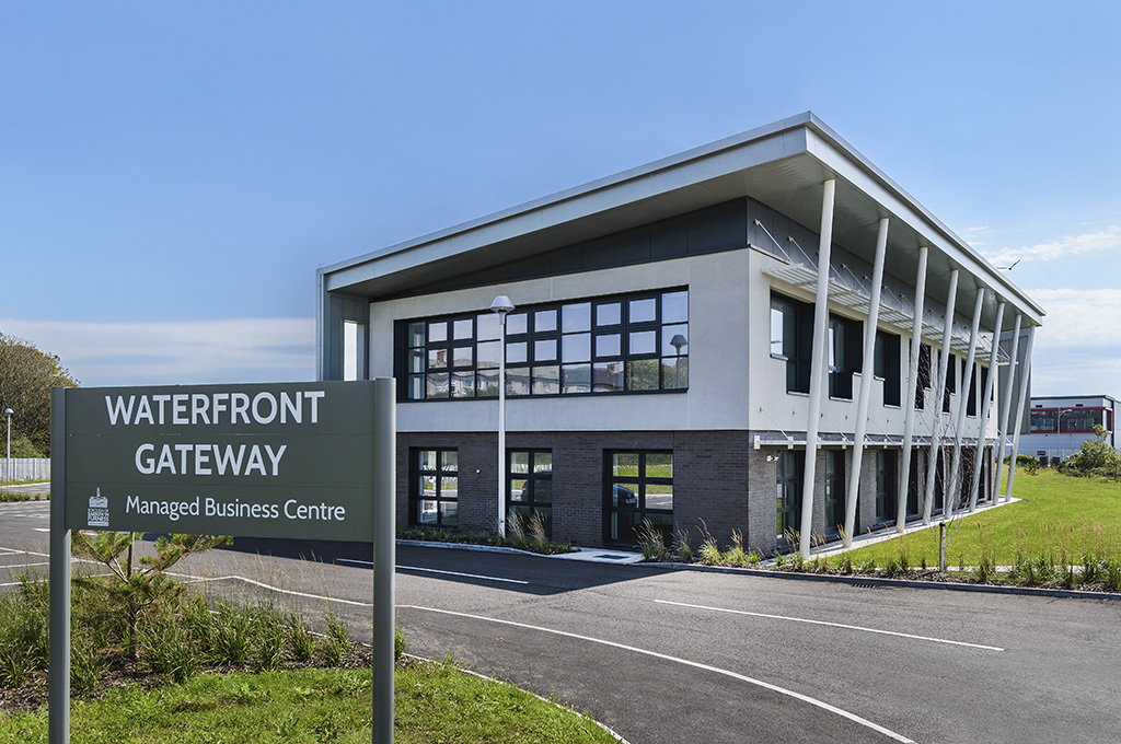 The Waterfront Gateway is the first plot to be constructed on the Waterfront Business Park at Barrow Island, a new development on a brownfield site at Barrow-in-Furness.
